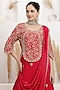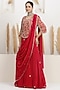 Cherry Red Georgette Pearl Embroidered Draped Gown Saree