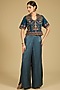Featuring a cobalt blue top in bamberg silk base with side slit detail, including sequins, aari, zari and floral embellishment. It is paired with mashru satin palazzo pants. Accentuate it with statement earrings and heels for festive ceremonies.