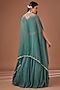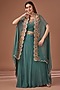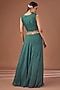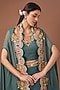 Featuring a green cape in organza and bamberg silk base with resham, gota patti, dabka, dori and sequins embroidery. It is paired with a crop top and a lehenga. Accentuate it with statement jewellery and heels for a wedding or mehendi ceremony.