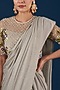 Featuring a grey stitched saree in shimmer lycra base. It is paired with a matching blouse having thread and pearl embroidery.