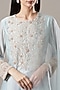 Featuring an ice blue anarkali in silk and organza base with pearl, dabka, and thread work embellishments. It is paired with matching palazzo pants and an organza dupatta.