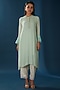 Featuring an ice blue straight kurta in georgette and cotton base with cutdana and pearls embroidery. It is paired with matching pants.