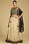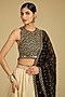Featuring an ivory lehenga in dola silk base with tassels. It is paired with a black halter neck blouse having sequins, cutdana and dabka embroidery, including an organza dupatta. Accentuate it with statement earrings and heels for sangeet ceremonies.