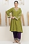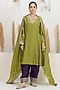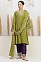 Light Olive Bemberg Silk Gota Embroidered A-Line Kurta Set