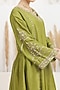Featuring a light olive A-line kurta in bemberg silk base with gota, sequins and beads embroidery. It is paired with salwar pants and an organza dupatta. Accentuate it with polki stud earrings, a polti bag and juttis for a festive occasions, sangeet or mehendi ceremonies.