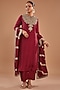 Featuring a maroon kurta in bemberg silk base with pearls, zari and dabka embroidery. It is paired with dupion silk pants and a banarasi dupatta. Accentuate it with statement earrings and heels for a festive look.