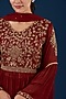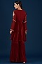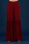 Featuring a maroon peplum top in georgette and chiffon base with cutdana, sequins, and pearl embroidery, including bell sleeves. It is paired with matching sharara pants and a dupatta.