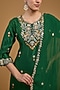Featuring a mehendi green straight kurta in chanderi silk base with gota patti, sequins, beads, dabka and dori embroidery. It is paired with georgette palazzo pants and an organza scalloped dupatta. Accentuate with statement earrings and heels for a complete look.