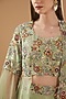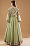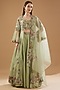 Featuring a moss green lehenga in dupion silk and organza base. It is paired with a matching blouse having thread, gota patti, dabka, pearl and sequins embroidery, including an organza dupatta.