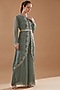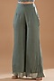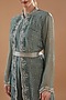 Featuring a moss green cape in organza base with thread, sequins, and cutdana embroidery It is paired with matching chinon georgette palazzo pants, a blouse and a belt.
