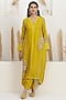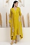 Mustard Bemberg Silk Zari Embroidered Asymmetrical Kurta Set