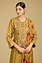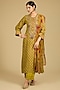 Featuring a mustard kurta in dola silk base with zari, sequins and dabka work. It is paired with cotton chanderi pants and a cotton mul dupatta. Accentuate it with statement earrings and heels for festive ceremonies.