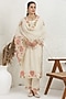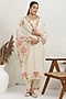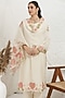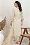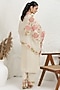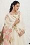 Featuring an off-white straight kurta in silk muslin base with pitta and applique embroidery. It is paired with pants and an organza embellished dupatta. Accentuate it with zircon earrings, embellished block heels and a potli bag for a festive occasion, sangeet or cultural celebrations.