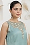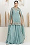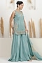 Featuring a pale turquoise kurta in satin silk base with sequins, beads, cutdana and dabka embroidery. It is paired with georgette sharara pants and an organza embroidered dupatta. Accentuate it with polki stud earrings, a polti bag and juttis for a festive occasions, sangeet or cultural celebrations.