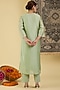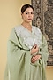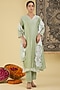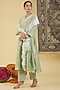 Featuring an elegant pastel green kurta in pure chanderi base with applique embroidery. It is paired with straight pants and a dupatta. Style this designer set with kundan stud earrings and juttis for festive occasions, mehendi or sangeet ceremony.