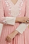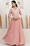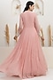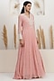 Featuring a peach gown in georgette base with cutdana, pearl and sequins embroidery. Accentuate it with zircon jewellery, a clutch bag and heels for a a cocktail, reception or an evening celebrations.