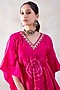 Featuring a pink kaftan in bamber silk base with tie-dye print, beads and sequins embroidery, including drawstrings.