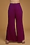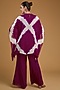Featuring a purple kaftan in georgette base with tie-dye print, mirror, bells, shells and tassel embroidery. It is paired with scalloped palazzo pants and an organza dupatta. Accentuate with statement earrings and heels for a complete look.