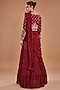 Featuring a red gown saree in chinon georgette base with an attached drape. It is paired with a soft net belt having beads, sequins and resham embroidery. Accentuate it with statement earrings and heels for weddings.