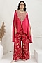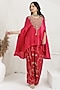 Red Fuchsia Satin Silk Cutdana Embroidered Cape Set
