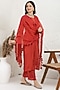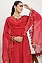 Featuring a red straight kurta in silk muslin base with thread and applique embroidery. It is paired with pants and an organza embellished dupatta. Accentuate it with zircon earrings, embellished block heels and a potli bag for a festive occasion, sangeet or cultural celebrations.