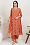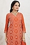 Featuring a rust kurta in russian silk base with french knot embroidery. It is paired with pants and an organza dupatta. Accentuate it with zircon earrings, embellished block heels and a potli bag for a festive occasion, sangeet or cultural celebrations.