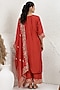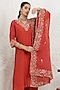 Featuring a rust straight kurta in russian silk base with pitta embroidery. It is paired with pants and an organza embroidered dupatta. Accentuate it with zircon earrings, embellished block heels and a potli bag for a festive occasion, sangeet or cultural celebrations.