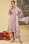 Soft Lilac Mal Chanderi Floral Embroidered Kurta Set