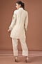 Featuring a white shirt in bemberg silk base with floral, pearl and sequin embroidery. It is paired with pants. Accentuate it with dangler earrings and heels for casual wear.