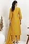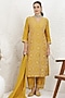 Featuring a mustard kurta in russian silk base with french knot hand embroidery. It is paired with pants and an organza embroidered dupatta. Accentuate it with zircon earrings, embellished block heels and a potli bag for a festive occasion, sangeet, haldi or cultural celebrations.