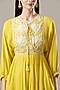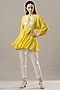 Featuring a yellow peplum top in crepe base with dori, resham, cutdana, and sequins embroidery. It is paired with contrasting white trouser pants.