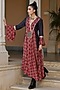 Featuring a maroon asymmetrical cape dress in muslin base with print and sequins embroidery.