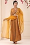 Mustard Muslin Printed Gown With Dupatta