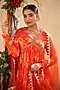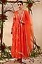 Featuring an orange flared gown in mul base with sequins and mul handwork, including floral print. It is paired with a matching dupatta.