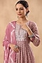 Featuring a pink kurta in mulmul base with print, mirror embroidery, and side slit. It is paired with matching palazzo pants and a chiffon dupatta having tie-dye print.