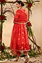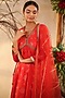 Featuring a red kurta in chinnon base with cutdana, beads, sequins, and hand embroidery, including foil print. It is paired with matching pants and a dupatta.