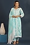 Featuring a turquoise gathered kurta in chanderi base with chikankari embroidery. It is paired with matching pants and a dupatta.