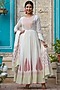 Featuring a white and peach anarkali in mulmul silk base with block print, including mirror and zari embroidery. It is paired with a matching dupatta having hand block print.