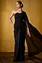 Featuring a black pre-draped saree in chiffon base. It is paired with an embellished quilted corset blouse. Accentuate it with dangler earrings and heels for a festive occasion or wedding ceremony.