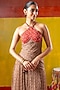 Beige & Red Chiffon Mirror Embroidered Dress