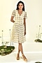 Featuring a beige midi dress in soft chiffon base with puff sleeves and a V-neckline. Accentuate it with stud earrings and heels for an evening look.