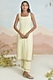 Featuring a beige kurta in soft cotton base with floral embroidery and a square neckline. It is paired with cotton straight-fit trousers and a cotton printed dupatta. Accentuate it with stud earrings and heels for a festive look.