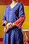 Featuring a blue kurta in muslin base with a v-neckline and patch work. It is paired with muslin pants and a chiffon dupatta. Accentuate it with polki jewellery and block heels for festive occasions or pooja ceremony.