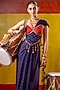 Blue & Red Satin Organza Draped Skirt Saree Set