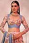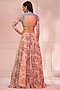 Featuring a blush peach tiered lehenga in chiffon base. It is paired with a matching chanderi and chiffon gathered blouse and a chanderi dupatta.