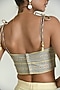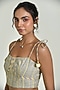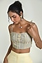 Featuring a green corset style top in cotton dobby base with floral motifs and stripe print. Accentuate it with pants, stud earrings and heels for an evening look.