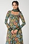 Baise Gaba features a green kalidar anarkali in lurex chiffon base with a scoop neckline, beadswork and print. It is paired with modal satin pants and a lurex chiffon dupatta. Accentuate it with polki earrings and block heels for festive soirees or pooja ceremony.