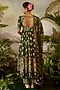 Green Modal Satin Striped Printed Straight Pants