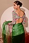 Featuring a green blouse in organza base with v-neckline, print and cutwork detailing. Style it with a saree or lehenga for a complete look.