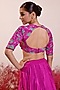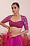 Featuring a magenta blouse in crepe base with print, sequins hand embroidery. Style it with a saree or lehenga for a complete look.